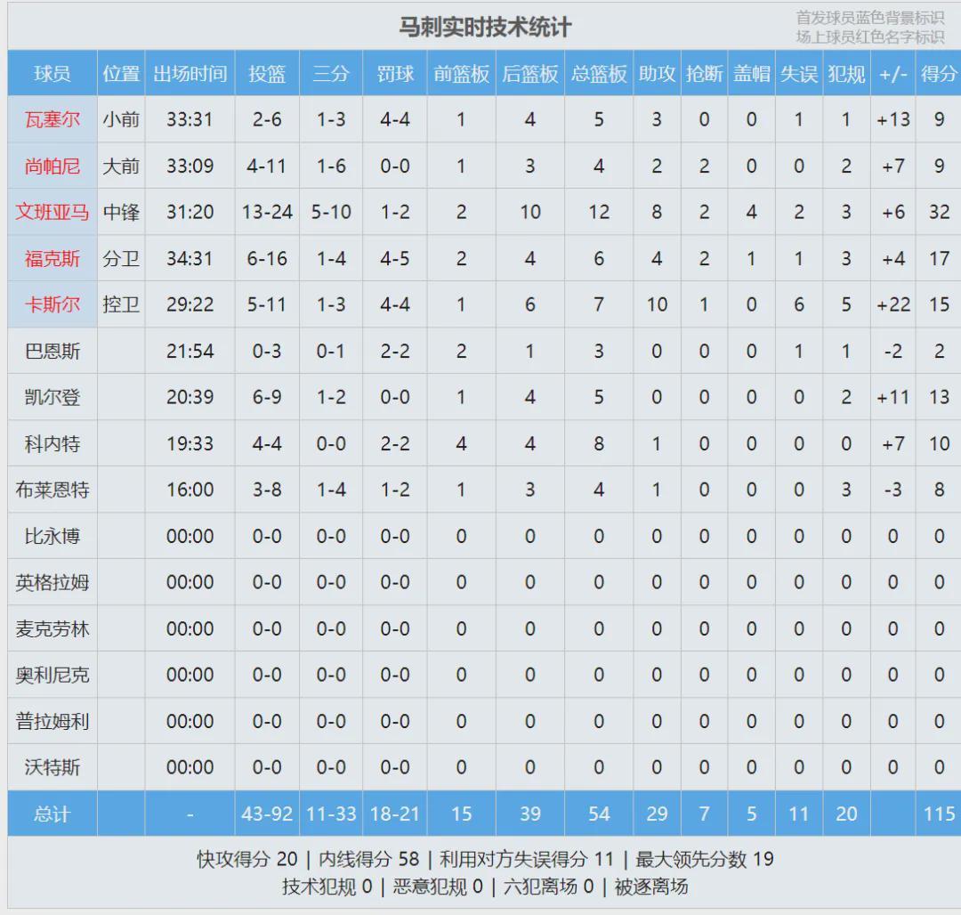 最后来看看本场数据,你觉得马刺能走多远?