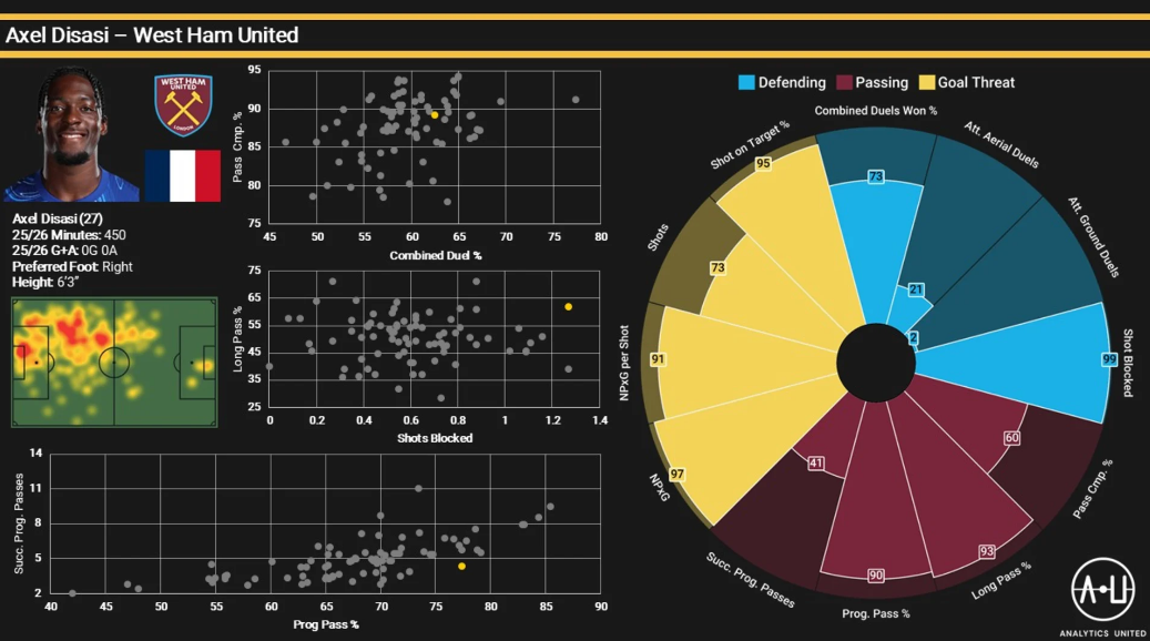 由西汉姆联球迷杰克-埃尔德顿和卡勒姆-古德尔创立的Analytics United旨在为其他球迷提供深入浅出的球队和球员分析,他们运用表现分析和数据来研究28岁的法国国脚阿克塞尔-迪萨西在西汉姆联队的影响……