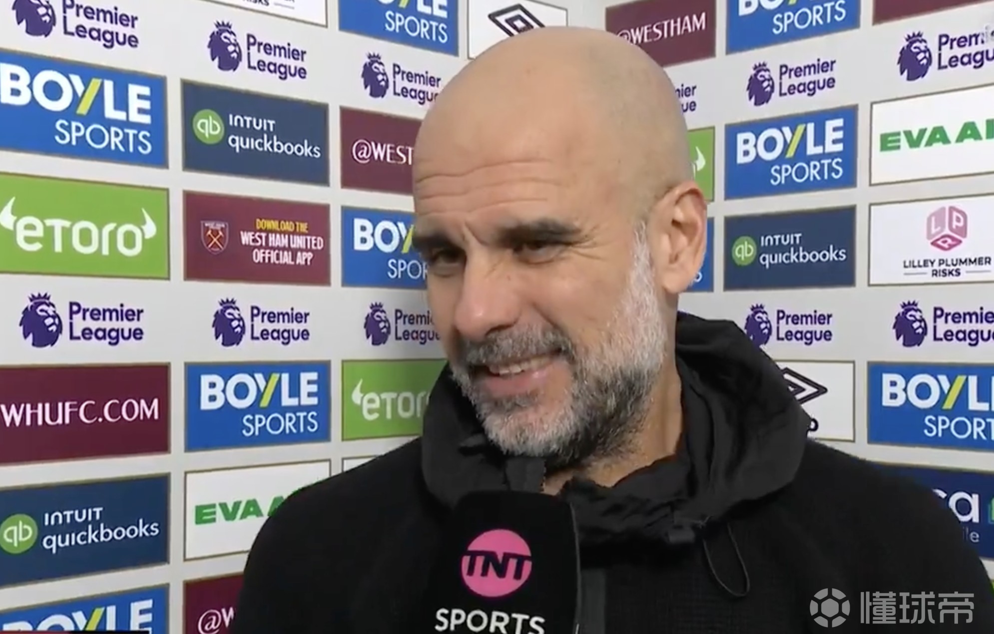 英超第30轮,曼城客场1-1战平西汉姆联,赛后,曼城主帅瓜迪奥拉接受了TNT体育的采访。